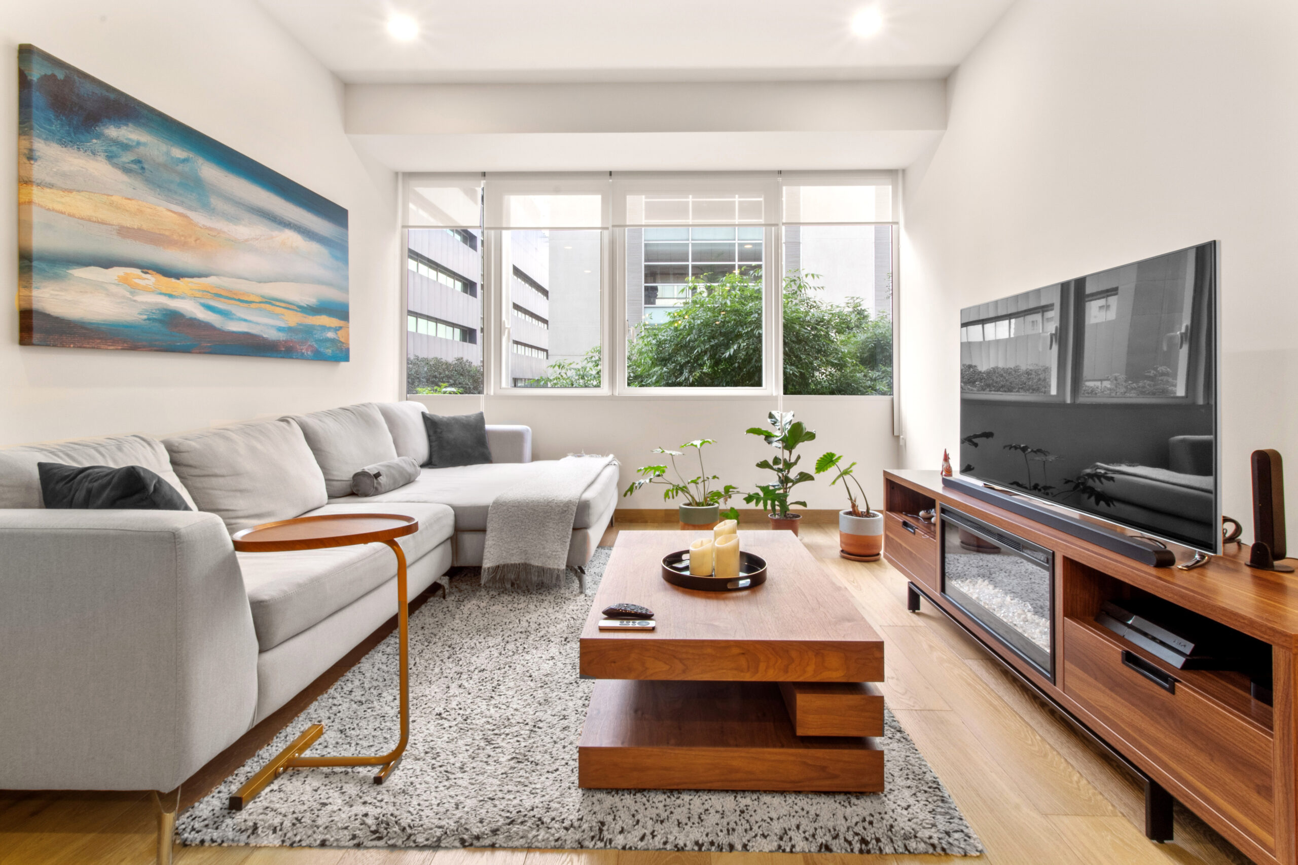 広さ80m2。ベッドルーム1室、バスルーム、ドレッシングルーム付。ゲスト用バスルーム。オープンキッチン。 パントリー付きランドリー・エリア。きれいな内装。電動ブラインド。フローリング。高品質仕上げ。明るい大きな窓。駐車スペース1台分。アメニティ一式。24時間セキュリティ。水道、電気、ガス、高速インターネット、メンテナンス。最低賃料1年。ペット不可。